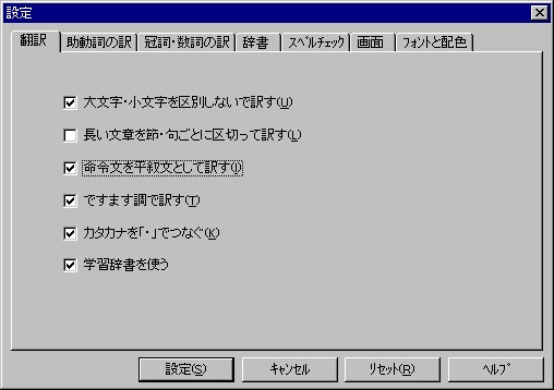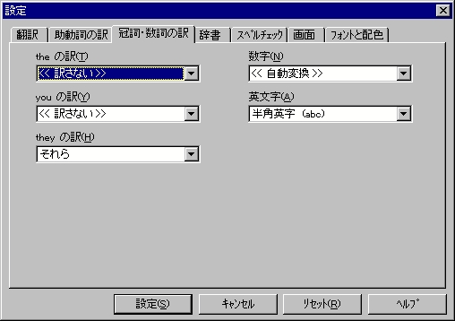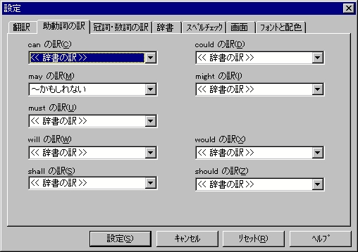 例えば、can の場合「〜できる、〜してもよい、〜する可能性がある、〜することがありえる、〜するはずである」の中から選ぶことができます。ただし、ここで指定するとすべてその訳になってしまいますので注 意してください。