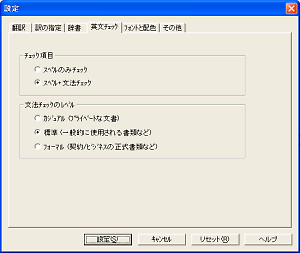チェックは「スペルのみ」と「スペル+文法チェック」のどちらかを選択します。 (図1)