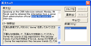 冗長な表現などは書き換えた方が良い場合があります。ここで「置換」ボタンをクリックすると「during