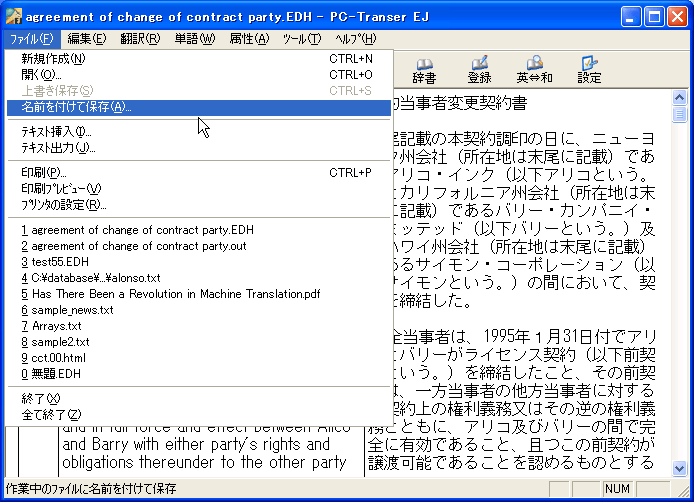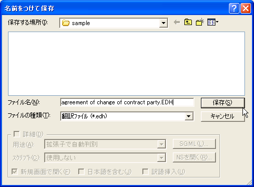拡張しは「.edh」となります。この形式では対訳のほかに、翻訳設定情報も保存されます。
