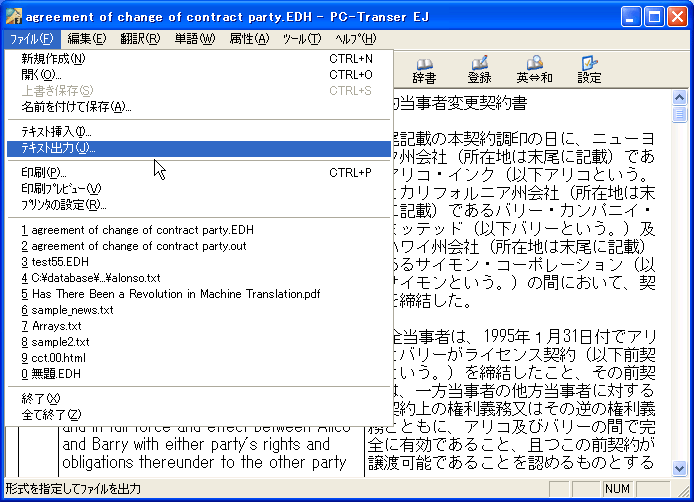 訳文ファイルには、入力したファイル名の後に「_j.txt」が付加されます。
