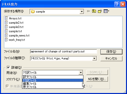 対訳ファイルには、入力したファイル名の後に「.out」が付加されます。