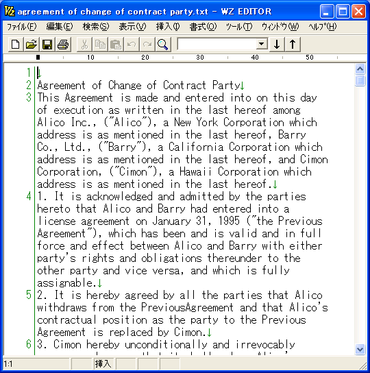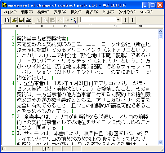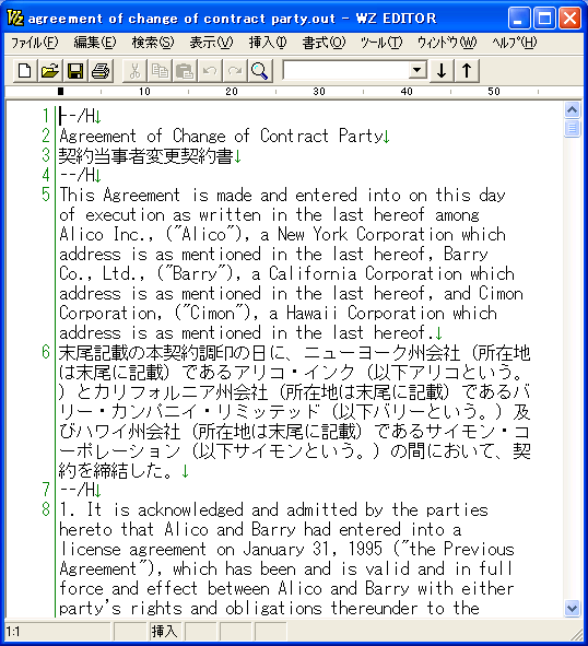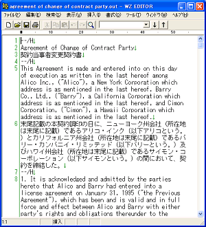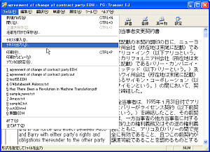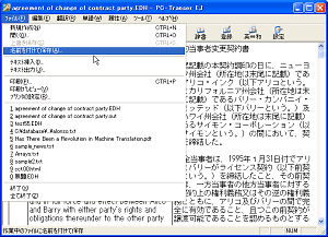 例えば、エディタなどでこの形式で英文と和文を並べて拡張子を「.out」で保存しておいて、PC-Transerで開くと左右対訳で表示されます。いわばPC-Transerを対訳ビューワーのように使うことができます。
