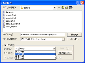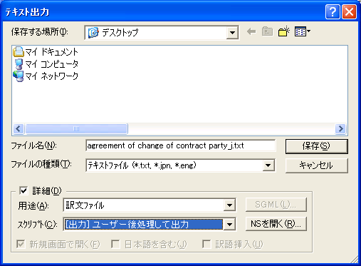 「開く」時と同じように、テキスト出力にも「スクリプト」機能があります。