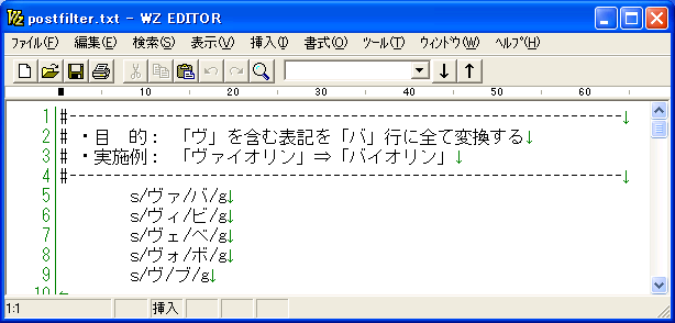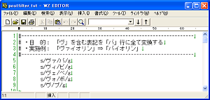 あらかじめ「postfilter.txt」というファイル(図12)に検索語と置換する語を入力しておきます。最終的な用語の変更などに利用できます。正規表現が使えます。